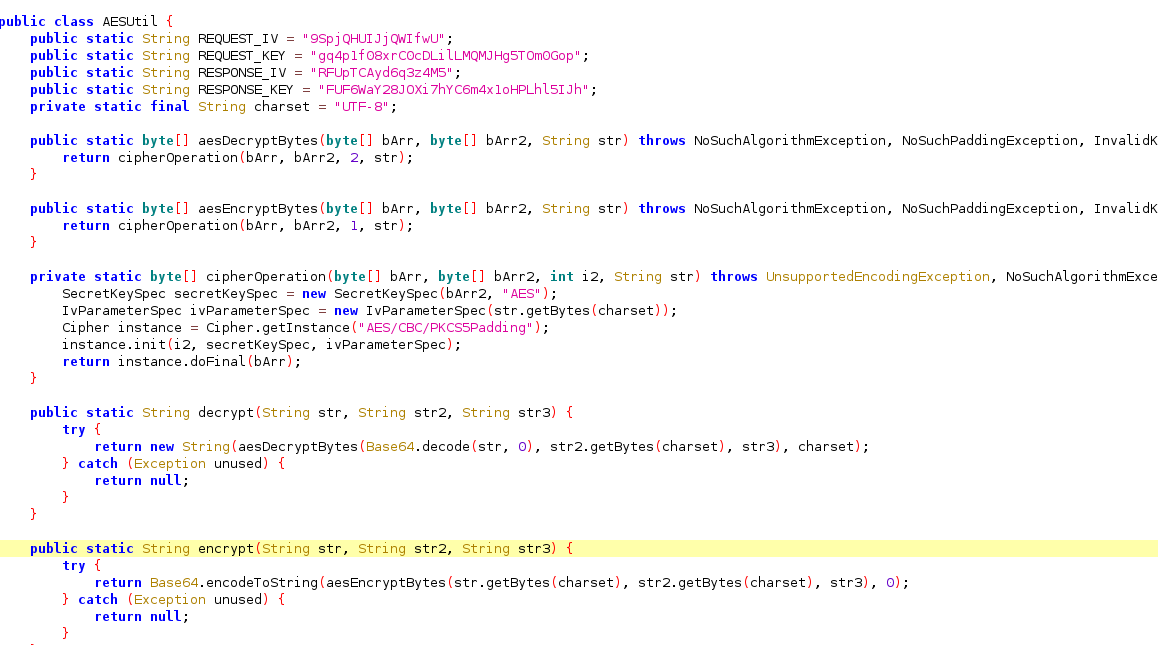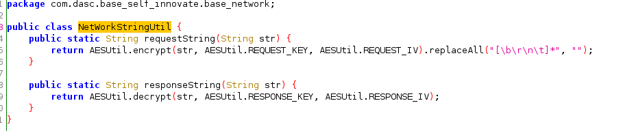 使用 objection 快速验证 e.h.a.f.h.e 为收集参数值,在查看 com.dasc.base_self_innovate.base_network.NetWorkStringUtil 为调用加解密.