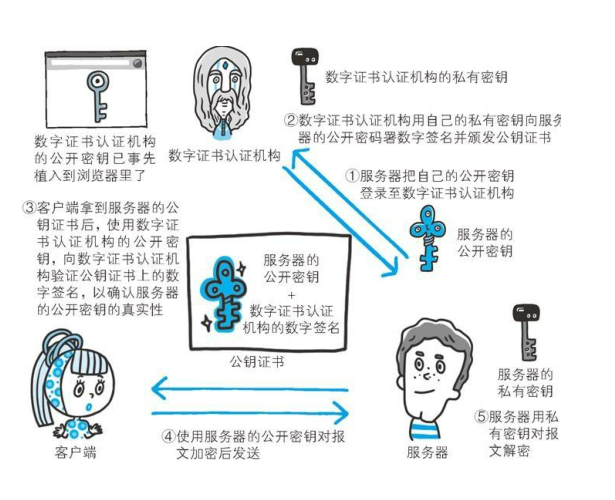 - 由于公开密钥的问题诞生了证书认证机构 CA![]()